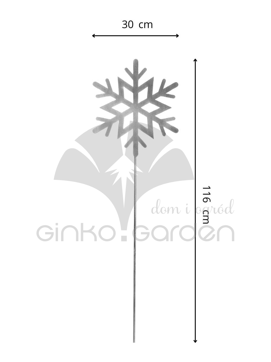 Nasza metalowa Śnieżynka Laura na pręcie to oryginalny pomysł na uzupełnienie Twojej kolekcji biżuterii ogrodowej w okresie zimowym. Świetnie odnajdzie się w ogrodzie lub na tarasie. Precyzyjnie wycięty element w sposób gustowny doda Twojej przestrzeni wyjątkowej świątecznej atmosfery. Z pomocą naszych produktów idealnie udekorujesz swoją okolicę na czas Bożego Narodzenia! Ta biżuteria ogrodowa jest idealnym przykładem estetycznej i pomysłowej podpórki do roślin lub palika ogrodowego. Wybierając produkty Ginko.Garden, inwestujesz w wysoką jakość i unikalność. Ręczne wykonanie oraz użycie trwałych materiałów gwarantuje, że każda ozdoba będzie nie tylko piękna, ale również trwała i odporna na zmieniające się warunki atmosferyczne. Może więc cieszyć Twoje oko w ogrodzie przez cały rok! Produkt wykonany ze stali malowanej proszkowo z efektem patyny. Każda sztuka jest unikatowa i może nieznacznie różnić się od tej zaprezentowanej na zdjęciu.