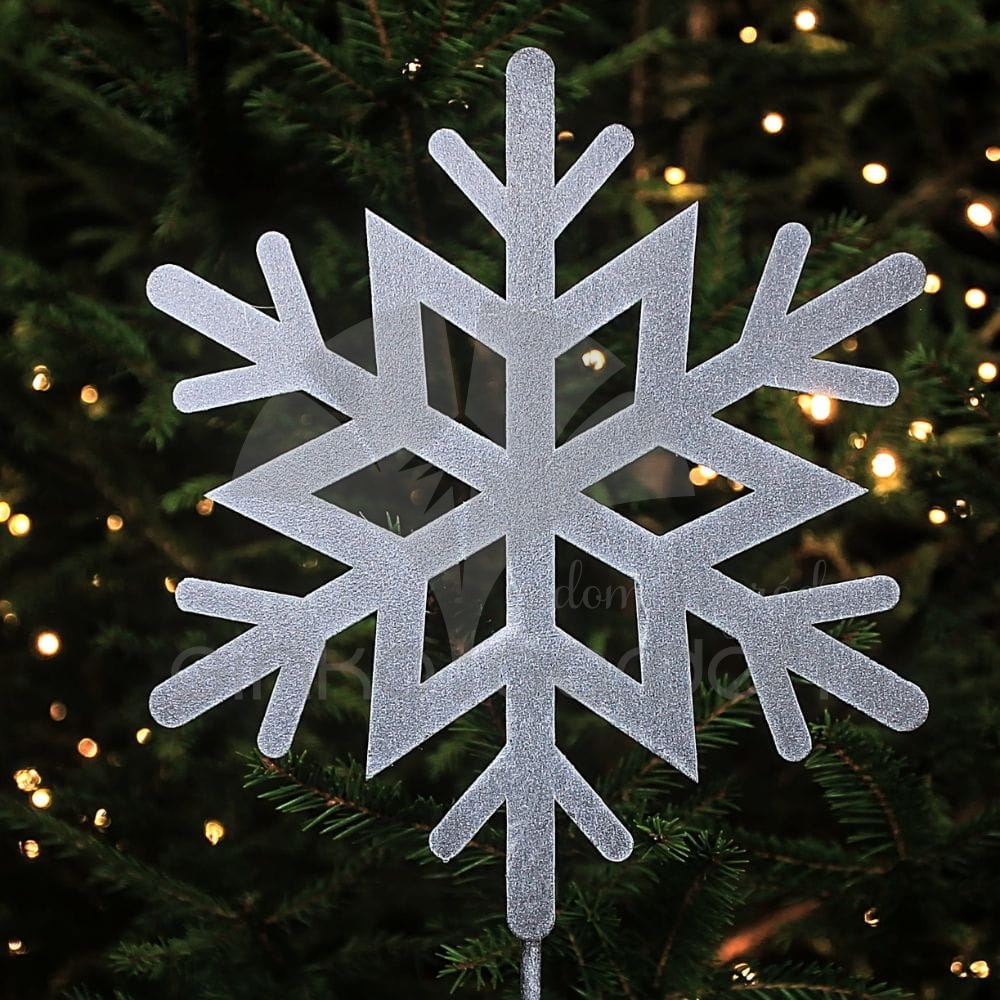 Metalowa dekoracja na Boże Narodzenie - śnieżynka na pręcie do ogrodu. Ozdoba świąteczna wykonana w Polsce z wysokiej jakości stali, pomalowanej proszkowo na kolor antracytowy. Odporna na warunki atmosferyczne.