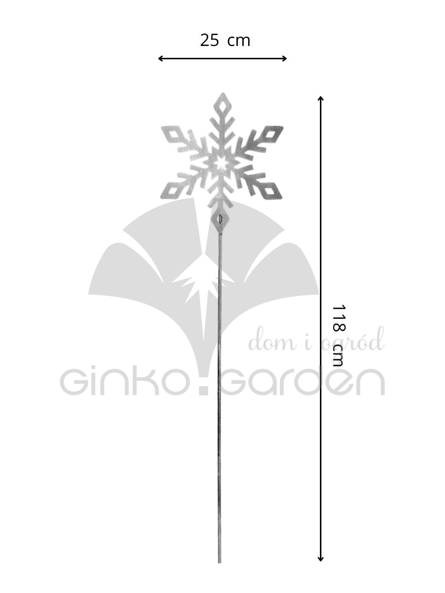 Nasza metalowa Śnieżynka Nina na pręcie to oryginalny pomysł na uzupełnienie Twojej kolekcji biżuterii ogrodowej w okresie zimowym. Świetnie odnajdzie się w ogrodzie lub na tarasie. Precyzyjnie wycięty element w sposób gustowny doda Twojej przestrzeni wyjątkowej świątecznej atmosfery. Z pomocą naszych produktów idealnie udekorujesz swoją okolicę na czas Bożego Narodzenia! Ta biżuteria ogrodowa jest idealnym przykładem estetycznej i pomysłowej podpórki do roślin lub palika ogrodowego. Wybierając produkty Ginko.Garden, inwestujesz w wysoką jakość i unikalność. Ręczne wykonanie oraz użycie trwałych materiałów gwarantuje, że każda ozdoba będzie nie tylko piękna, ale również trwała i odporna na zmieniające się warunki atmosferyczne. Może więc cieszyć Twoje oko w ogrodzie przez cały rok! Produkt wykonany ze stali malowanej proszkowo z efektem patyny. Każda sztuka jest unikatowa i może nieznacznie różnić się od tej zaprezentowanej na zdjęciu.