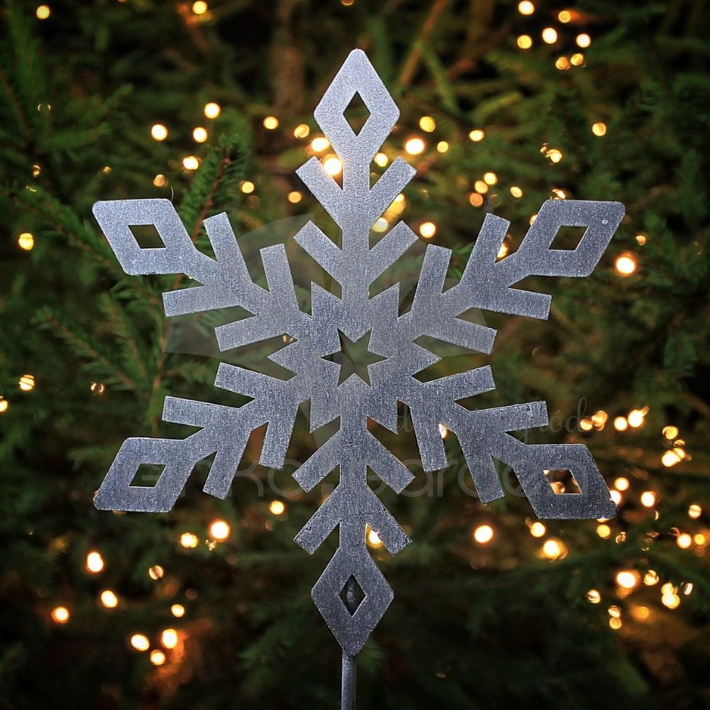 Metalowa dekoracja na Boże Narodzenie - śnieżynka na pręcie do ogrodu. Ozdoba świąteczna wykonana w Polsce z wysokiej jakości stali, pomalowanej proszkowo na kolor antracytowy. Odporna na warunki atmosferyczne.