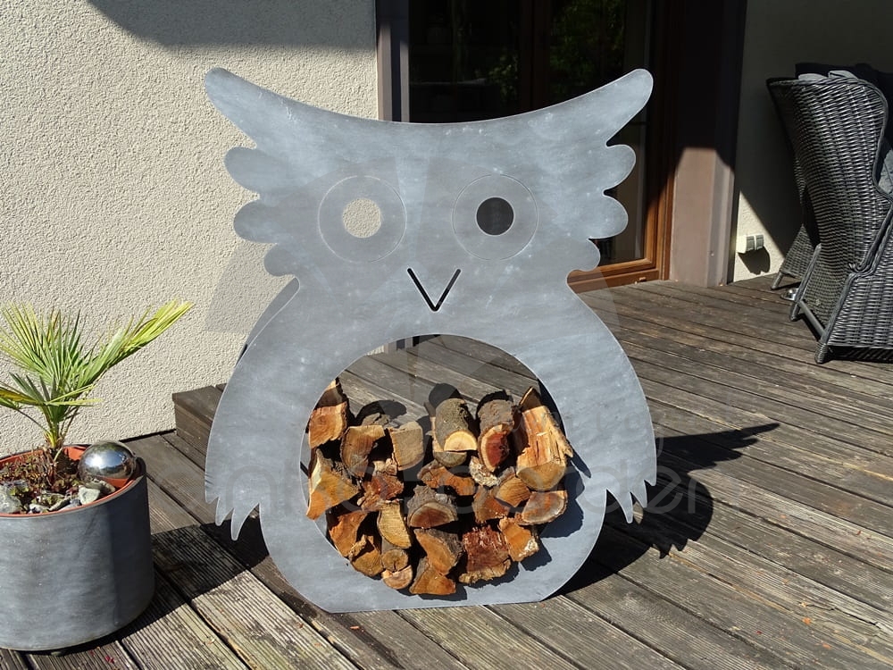 Jego forma, przypominająca sowę, sprawia, że polana ułożone w nim stają się nie tylko praktycznym rozwiązaniem, ale również dekoracją przy kominku, wejściu do domu czy w ogrodzie.
