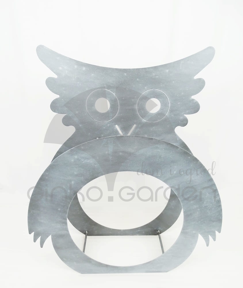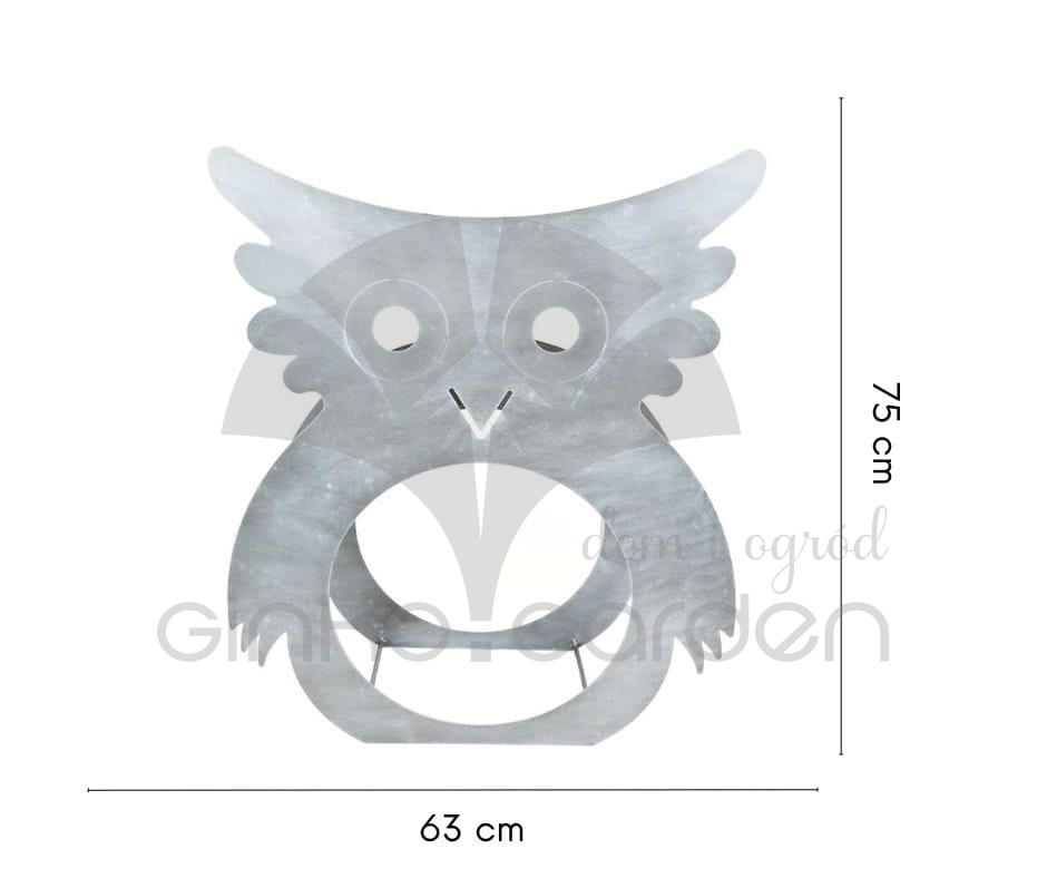 Nowoczesny metalowy stojak na drewno kominkowe w formie sowy. Wykonany w Polsce z wysokiej jakości stali, malowanej proszkowo na kolor antracytowy. Odporny na warunki atmosferyczne.