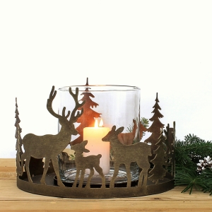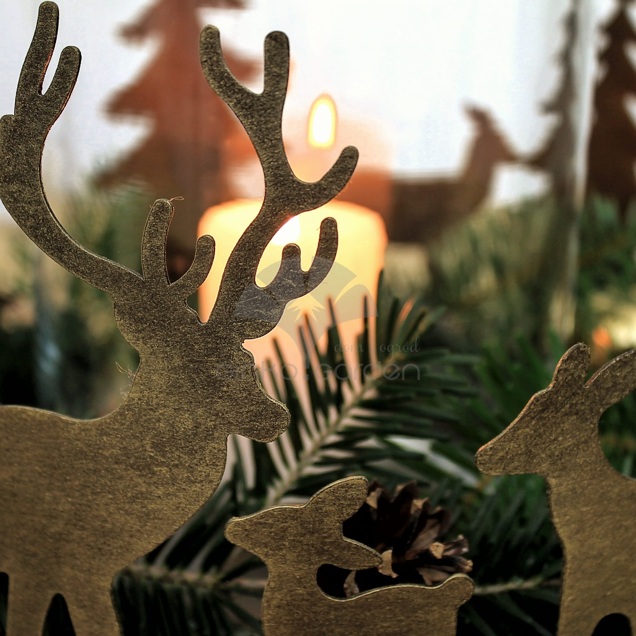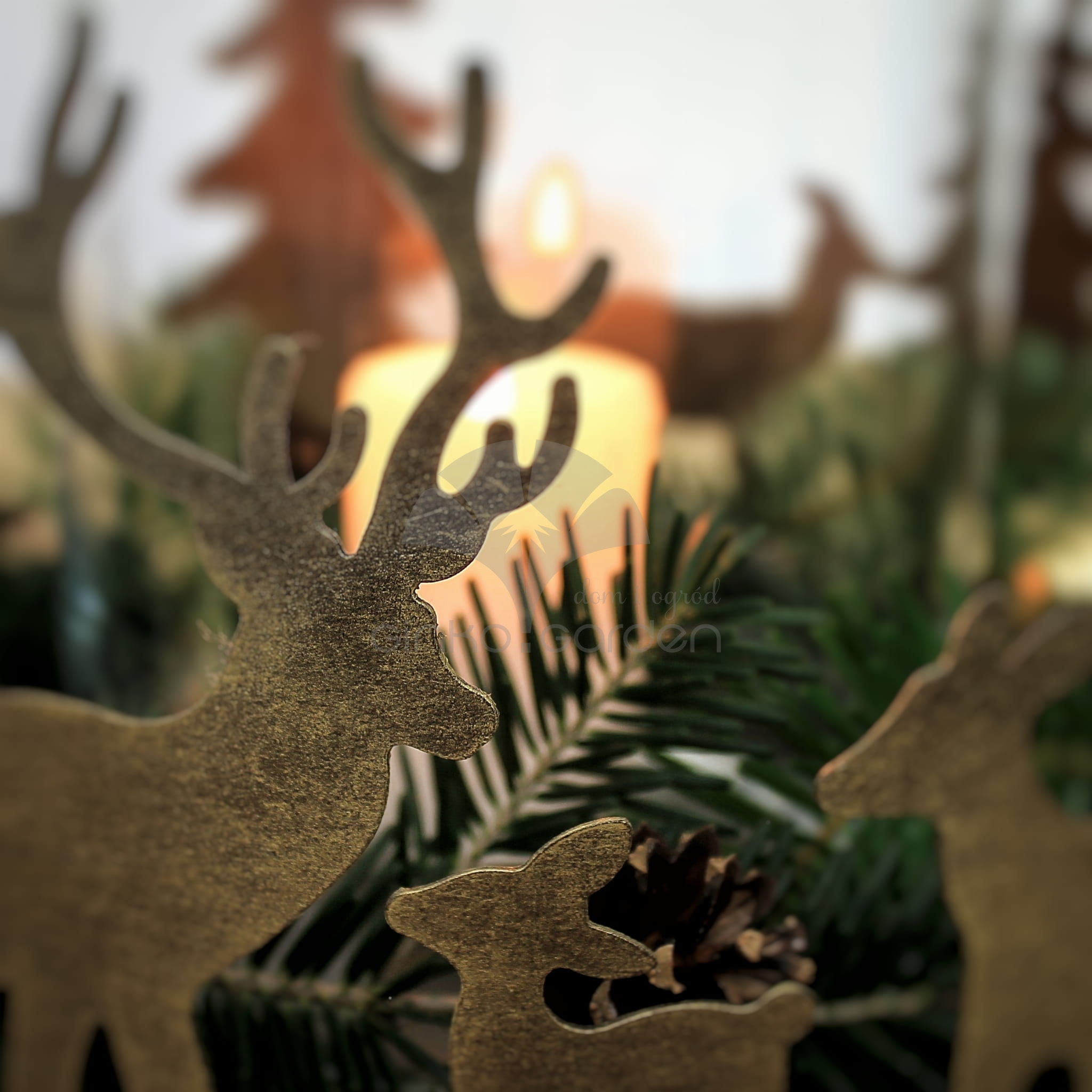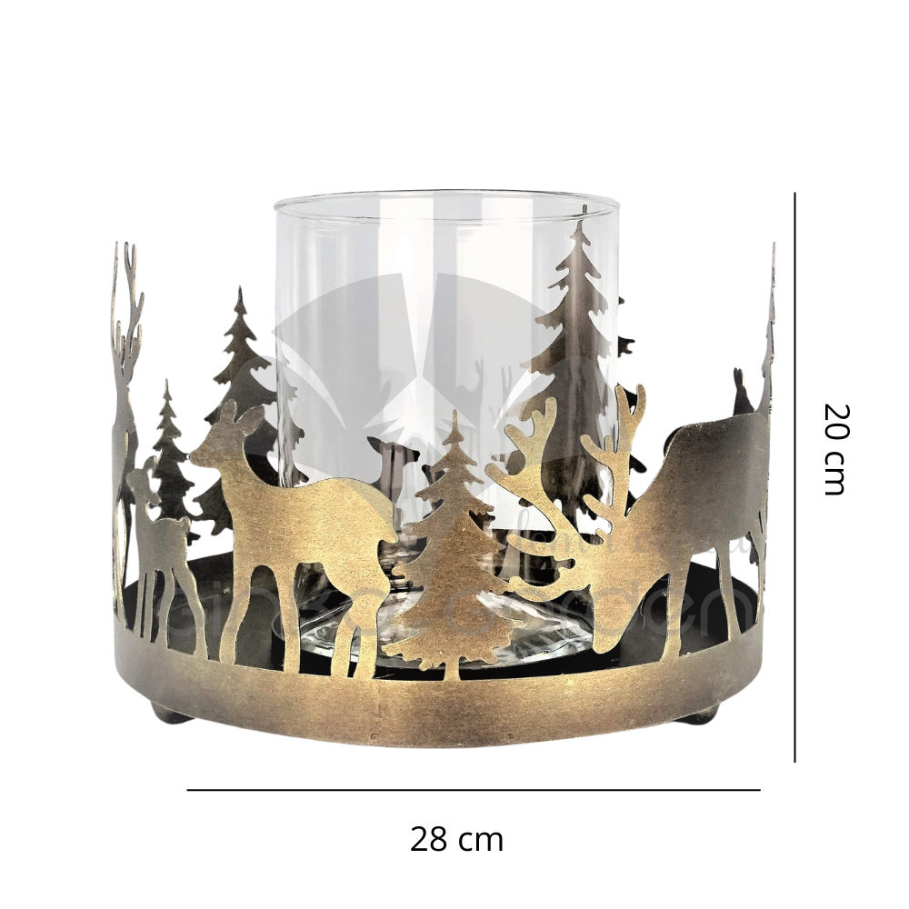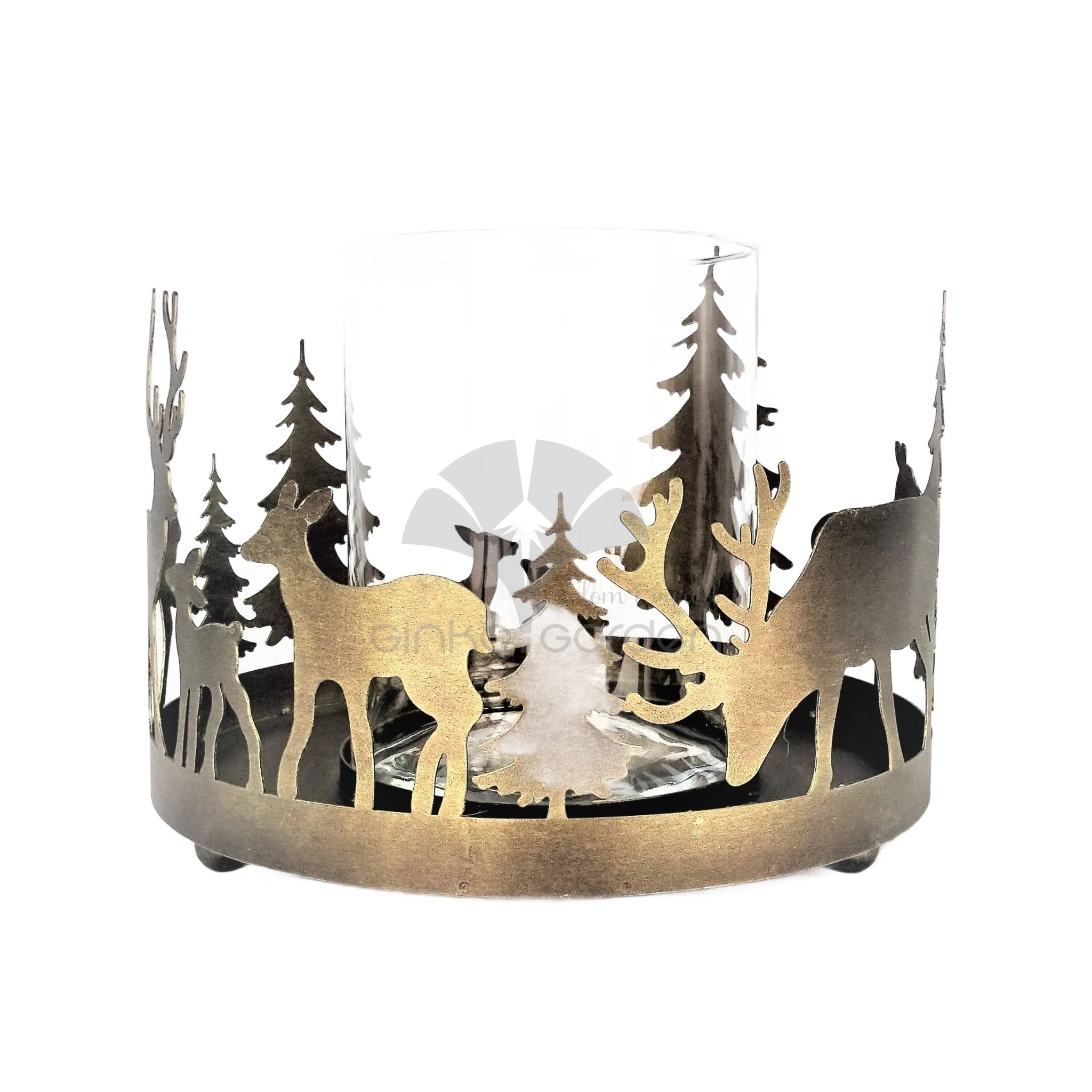 Metalowy Świecznik z wkładem szklanym Jelonki w kolorze złotej rdzy - świąteczna dekoracja podświetlająca