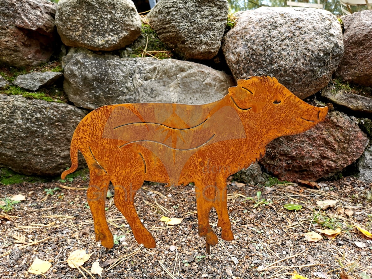 Figurka Warchlaka – małego dzika do wbicia to urocza dekoracja ogrodowa, która doda charakteru każdemu zakątkowi Twojego ogrodu. Wykonana w Polsce z trwałej stali, biżuteria ogrodowa została poddana naturalnemu procesowi rdzewienia, nadając jej surowy, rustykalny wygląd.